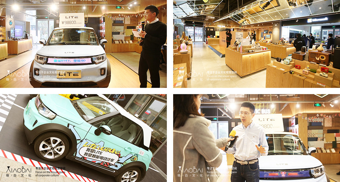与洛可可合作,为北汽集团提供在极客巴士发布会的所有物料。我们做了一个很有意思的快递盒,这涉及到材料的综合运用,现场效果很有意思。